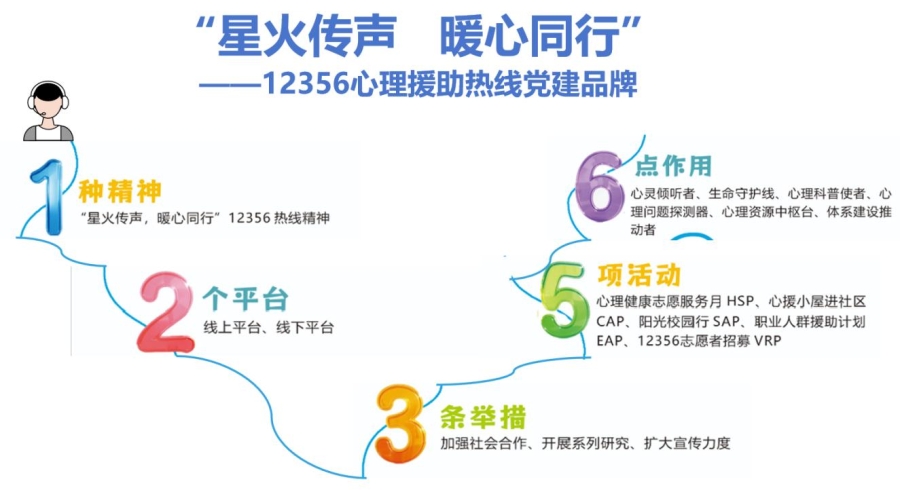 我们凝练“星火传声,暖心同行”品牌内核,创新“1—2—3—5—6”工作法:秉承一种热线精神,依托线上线下两大平台,通过合作、研究、宣传三项措施联动,开展志愿服务月、社区心援、校园行、职业援助、志愿者招募等五项活动,发挥倾听者、守护线、科普者、探测器、中枢台、推动者六重功能,让抽象使命变具体行动。