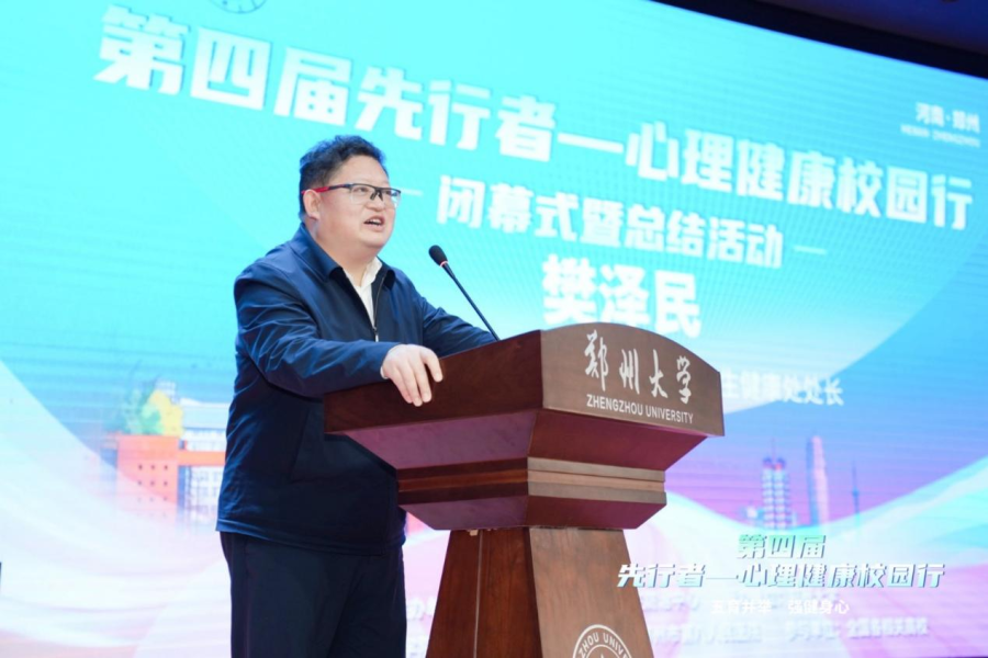 2025年12月5日至7日,历时近两个月的第四届“先行者——心理健康校园行”闭幕式暨总结活动在郑州大学成功举办。教育部体育卫生与艺术司卫生健康处处长樊泽民,国家心理健康和精神卫生防治中心副主任黄长群,郑州大学大学党委常委、副校长王海杰,中国科学院大学心理健康教育中心主任肖斌,郑州市第八人民医院副院长孔德荣等领导专家出席闭幕式暨总结活动,来自全国参与高校师生代表150余人参加。